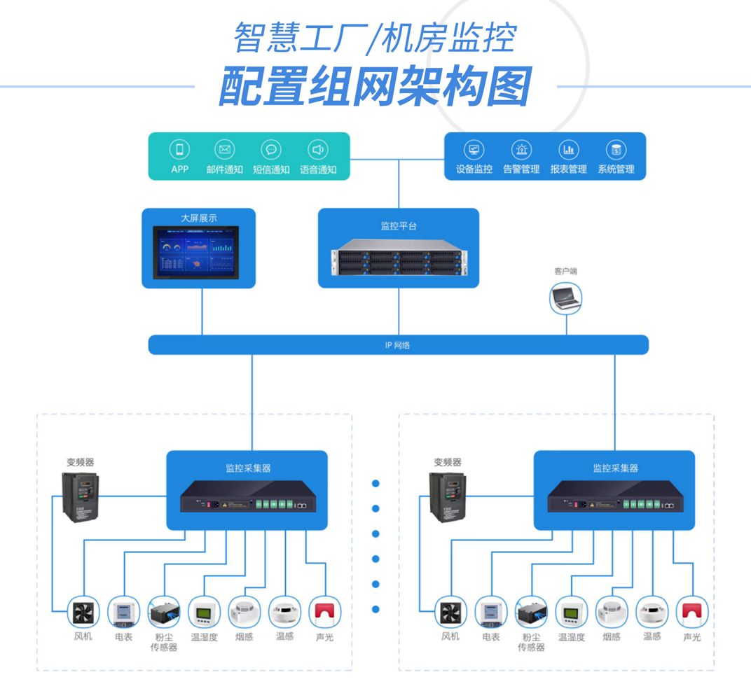 监控采集器采用1U机架式,Linux系统,内置监控软件,可接入UPS,风机,空调,配电柜,粉尘传感器,温湿度,水漫,烟感等综合环境设备,对工厂、机房环境设备采集监控,同时通过系统软件对数据分析,动态调整设备参数、状态、为企业节能减排,降本增效。